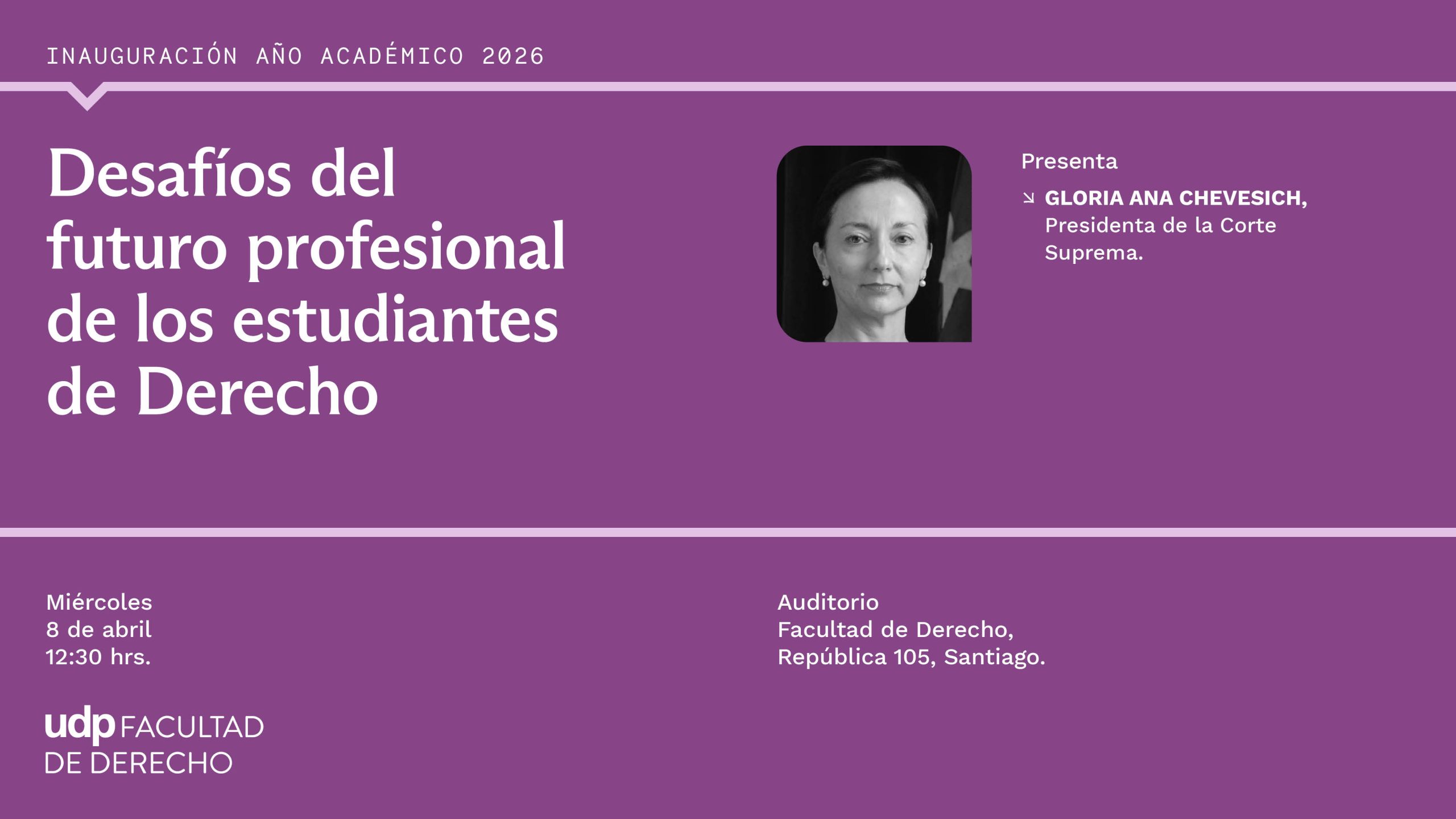 📍Martes 14 de abril, 11:30 horas, Aula Magna de la Facultad de Derecho UDP (República 105, Santiago).
