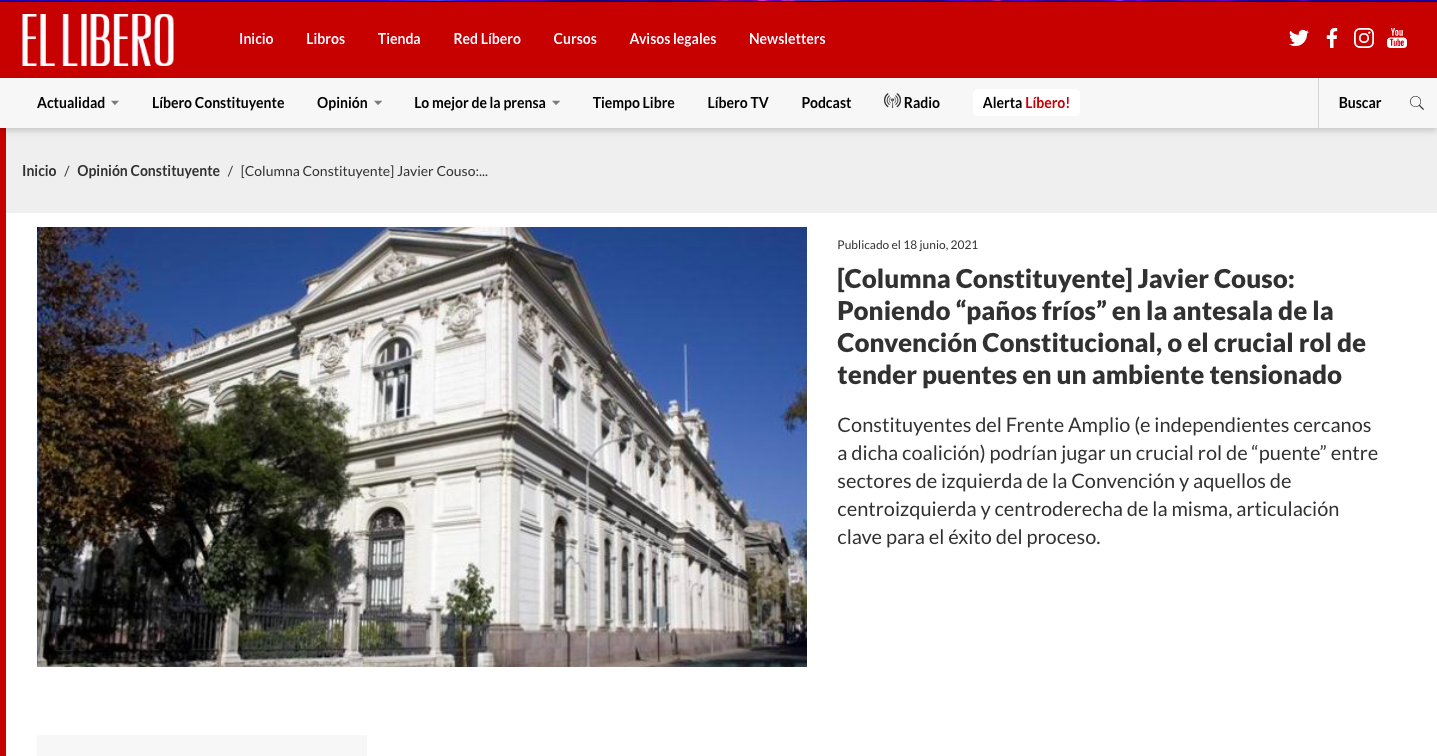 [Columna Constituyente] Javier Couso: Poniendo “paños fríos” en la antesala de la Convención Constitucional, o el crucial rol de tender puentes en un ambiente tensionado