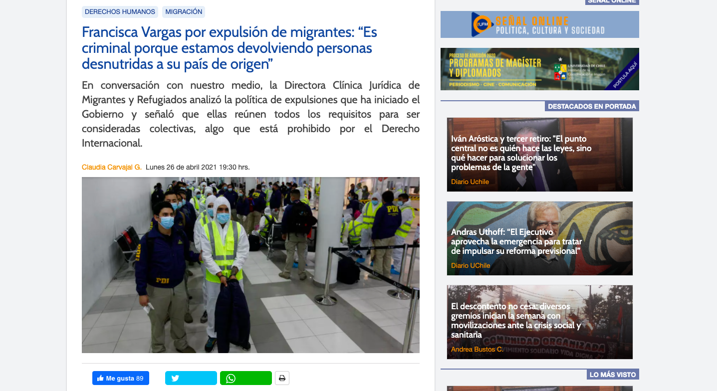 Francisca Vargas por expulsión de migrantes: “Es criminal porque estamos devolviendo personas desnutridas a su país de origen”