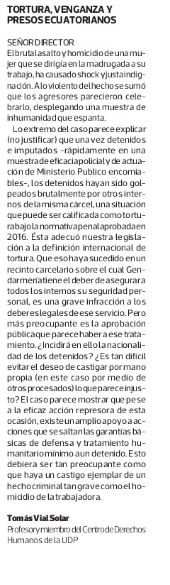 La Tercera | Tortura, venganza y presos ecuatorianos – Tomás Vial
