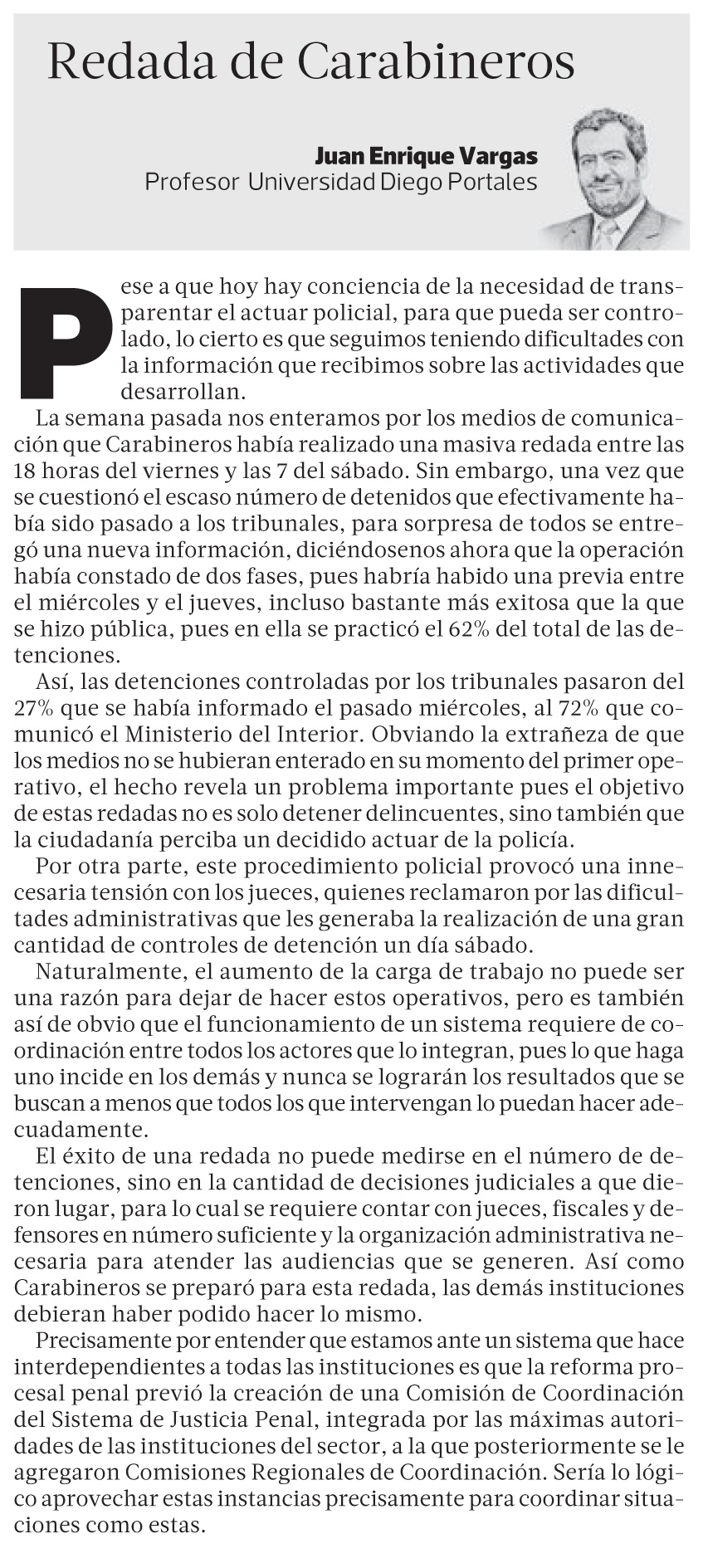 La Tercera | Redada de Carabineros – Juan Enrique Vargas