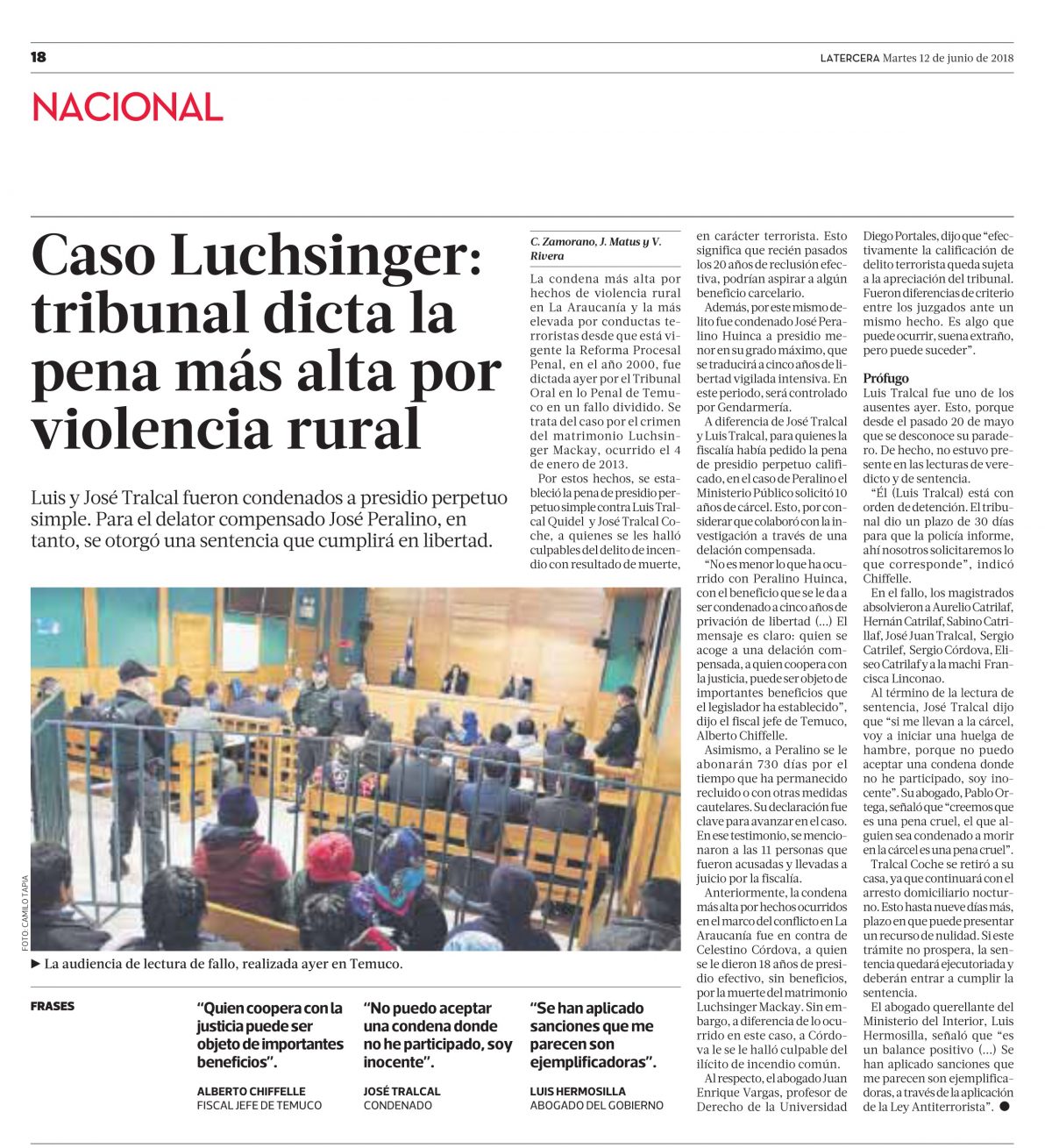 La Tercera | Caso Luchsinger: tribunal dicta la pena más alta por violencia rural – Juan Enrique Vargas