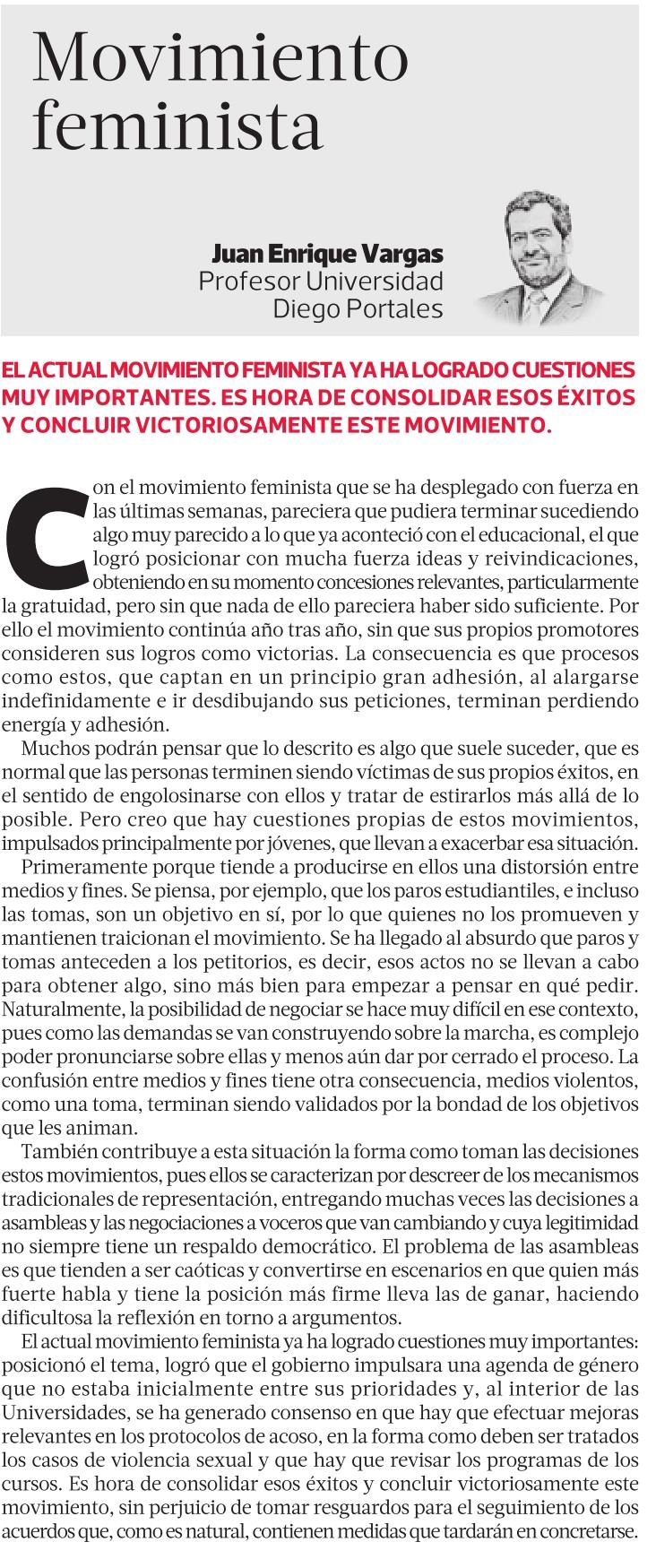 La Tercera | Movimiento feminista – Juan Enrique Vargas