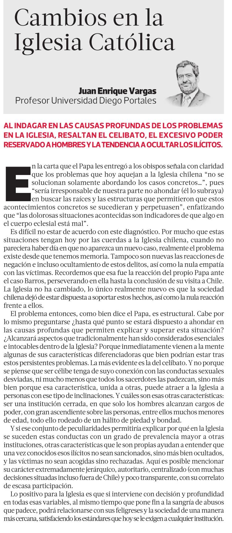 La Tercera | Cambios en la Iglesia Católica – Juan Enrique Vargas