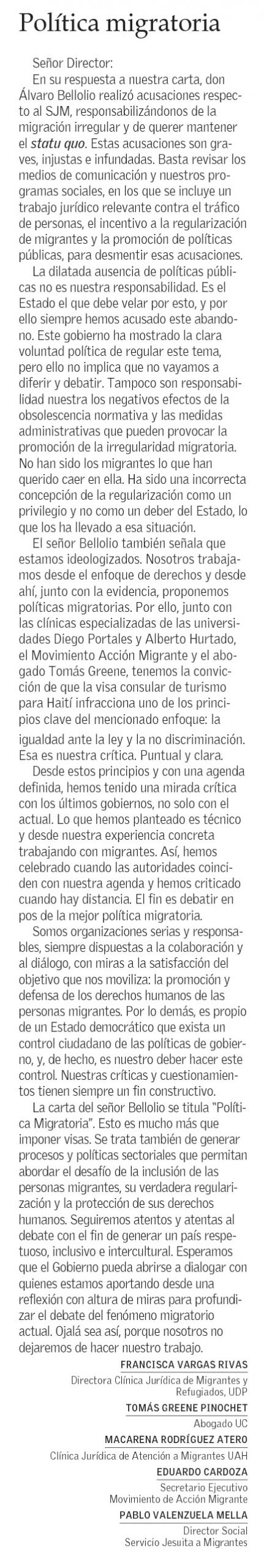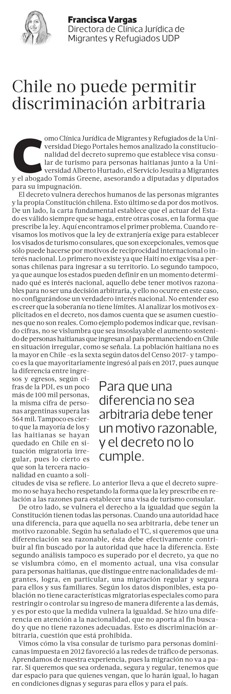 La Tercera | Chile no puede permitir discriminación arbitraria – Francisca Vargas