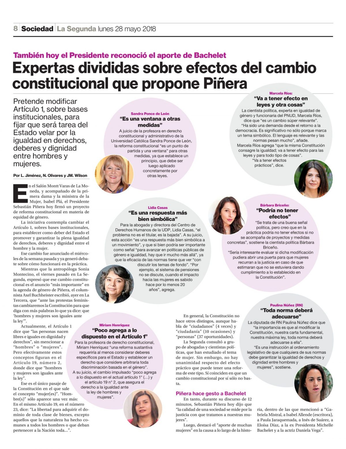 La Segunda | Expertas divididas sobre efectos del cambio constitucional que propone Piñera – Lidia Casas