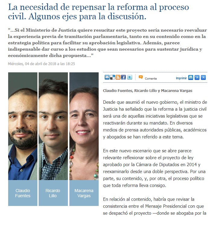 El Mercurio Legal | La necesidad de repensar la reforma al proceso civil. Algunos ejes para la discusión – Claudio Fuentes, Ricardo Lillo y Macarena Vargas