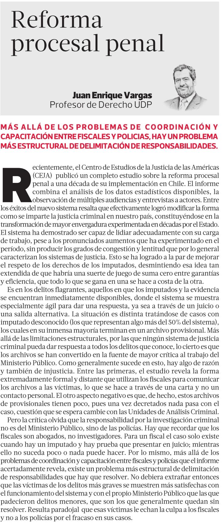 La Tercera | Reforma Procesal Penal – Juan Enrique Vargas