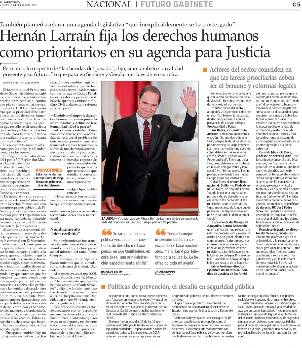 El Mercurio | Mauricio Duce opina sobre la llegada de Hernán Larraín al Ministerio de Justicia y fija los desafíos para esa cartera