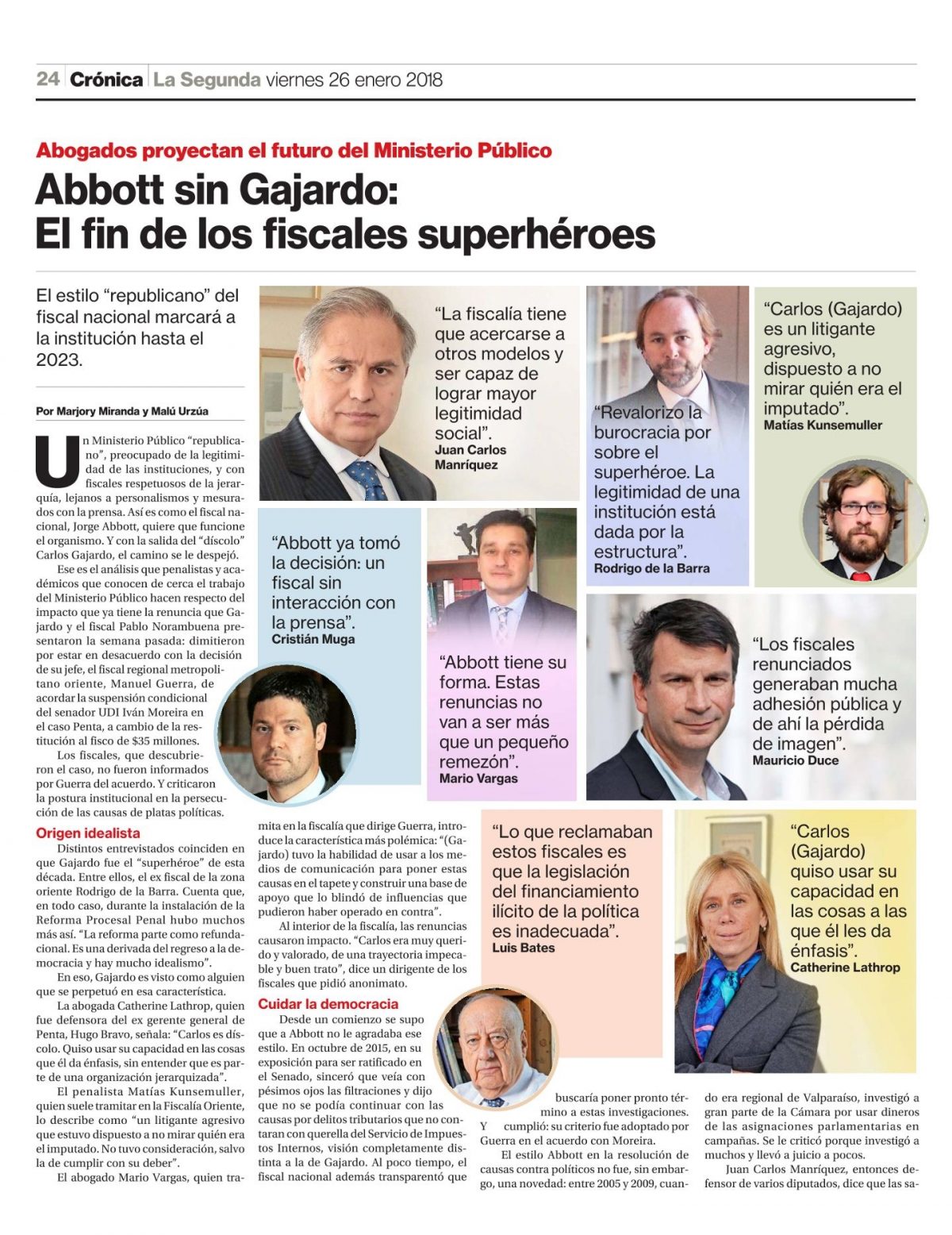 La Segunda | Profesores y egresados de Derecho UDP opinaron sobre el futuro de la fiscalía tras la renuncia de Carlos Gajardo