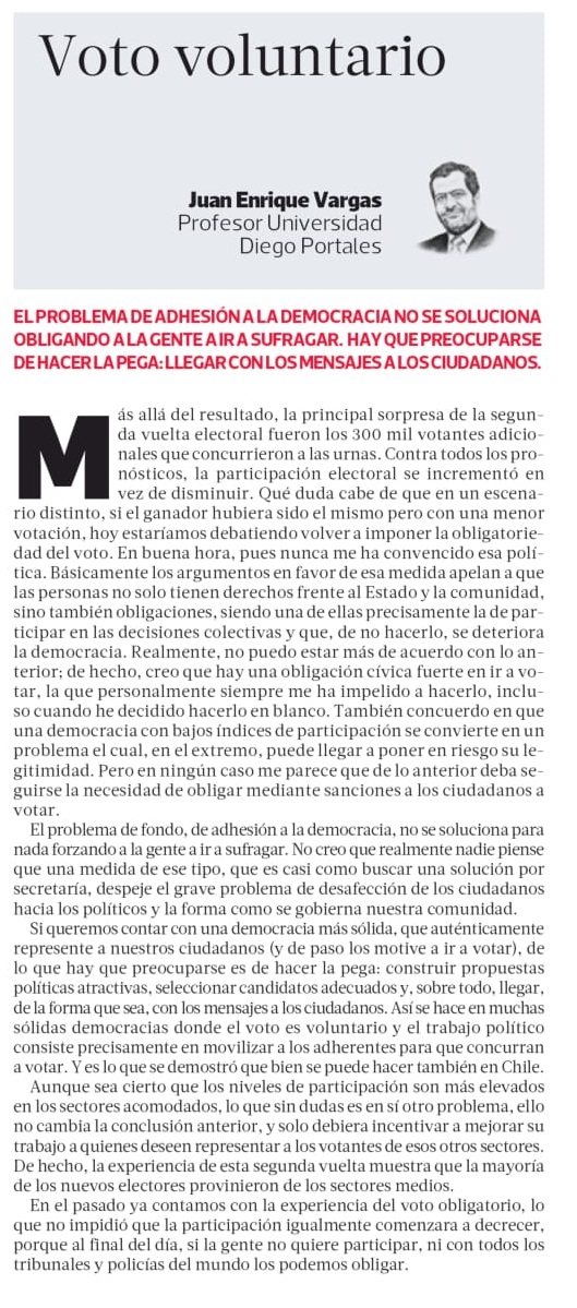 La Tercera | Voto voluntario – Juan Enrique Vargas