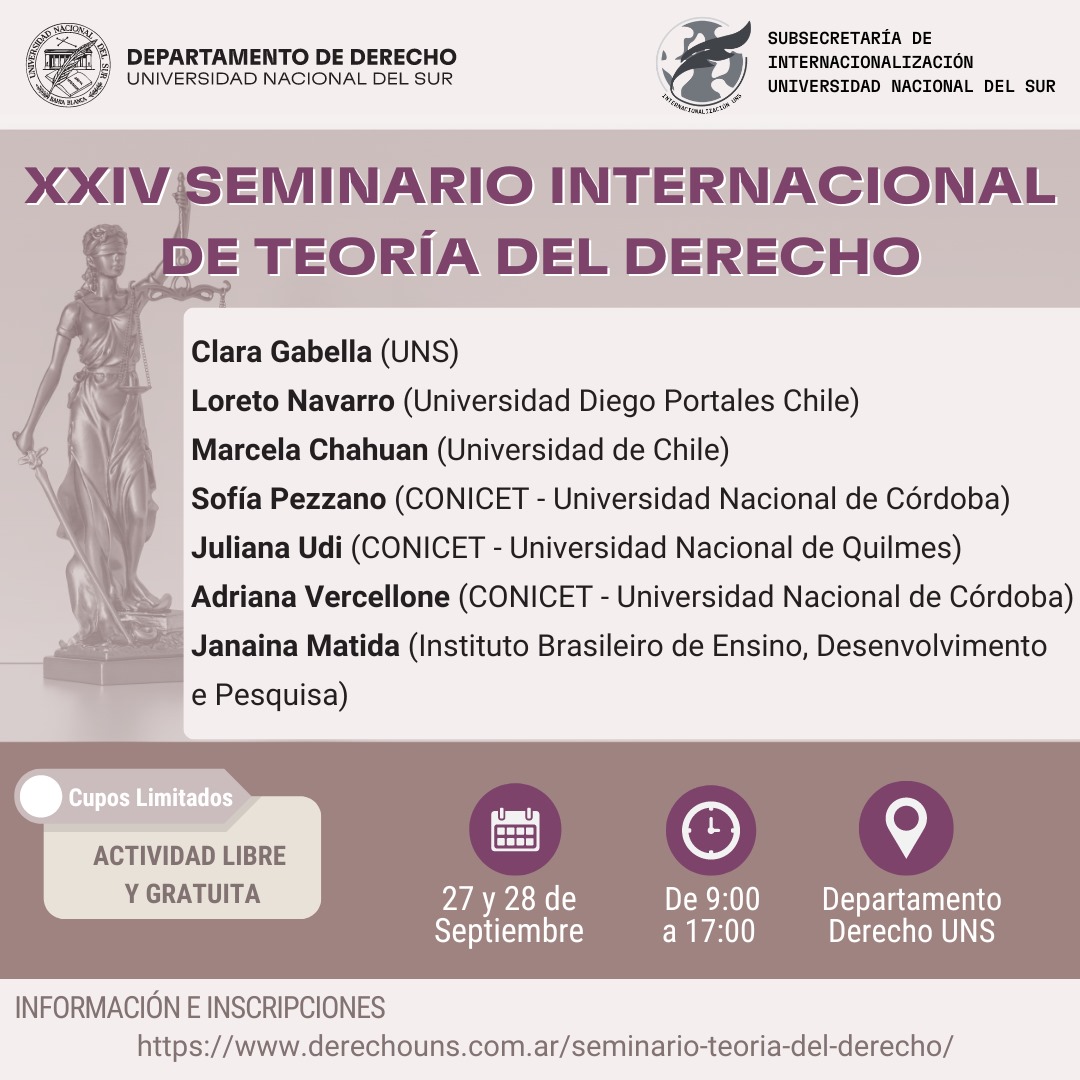 Profesora Loreto Navarro participará en el XXIV Seminario Internacional de Teoría del Derecho de la Universidad Nacional del Sur, Argentina