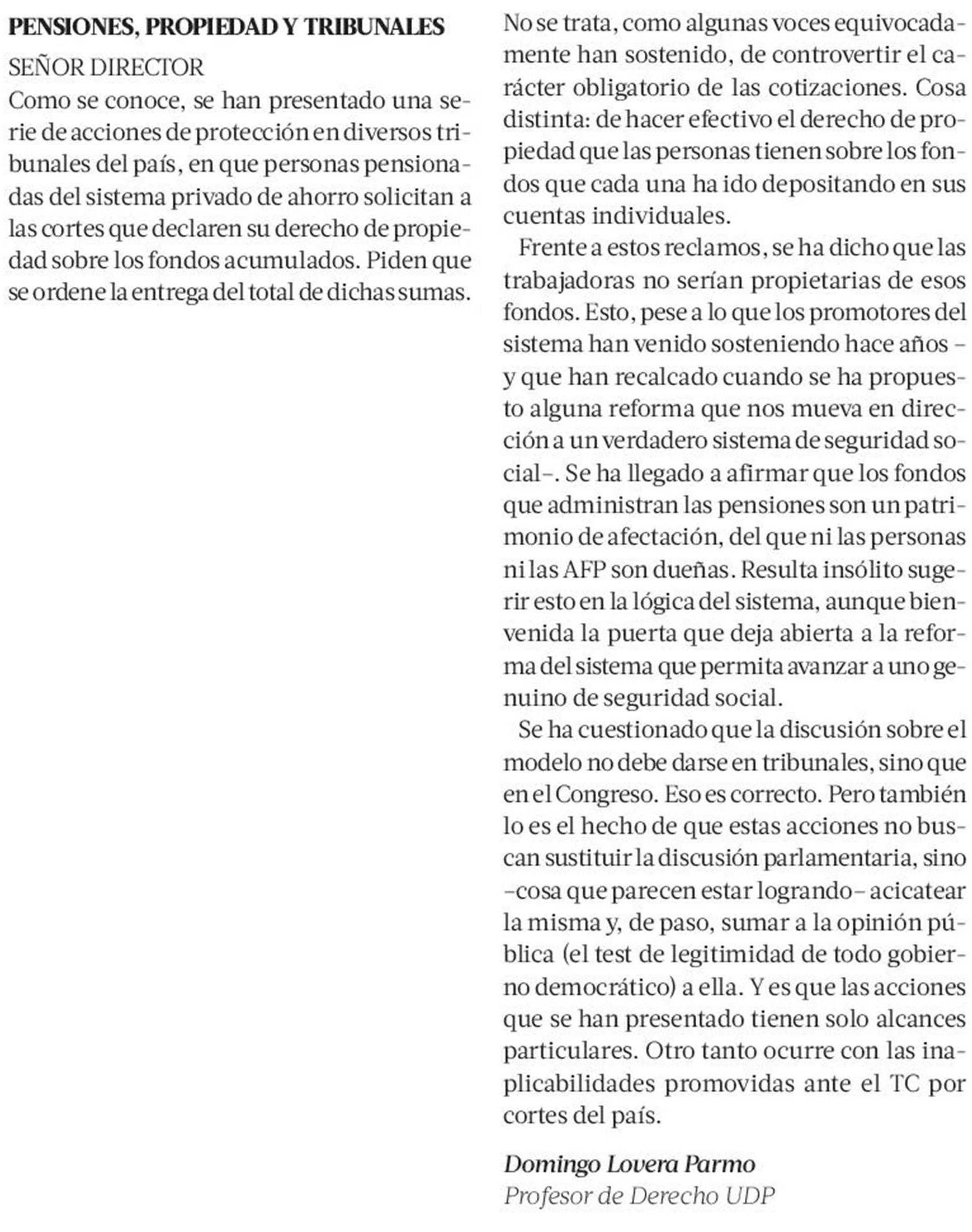 Carta al Director de Domingo Lovera, académico de la Facultad de Derecho UDP, en La Tercera. Revisa aquí su artículo completo: