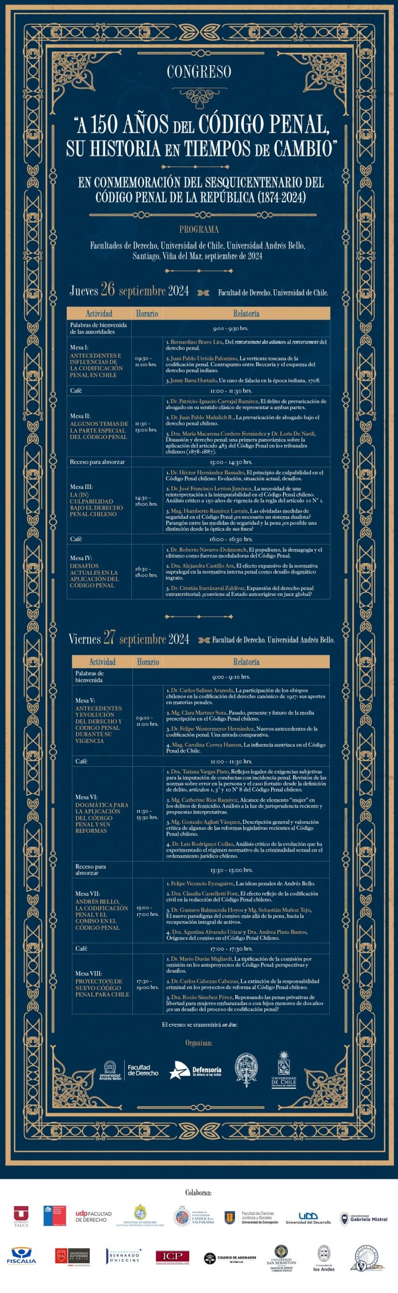 Este jueves 26 y viernes 27 de septiembre se llevará a cabo el Congreso “A 150 años del Código Penal, su historia en tiempos de cambio”, donde tres docentes de la Facultad de Derecho de la Universidad Diego Portales serán partícipes.
